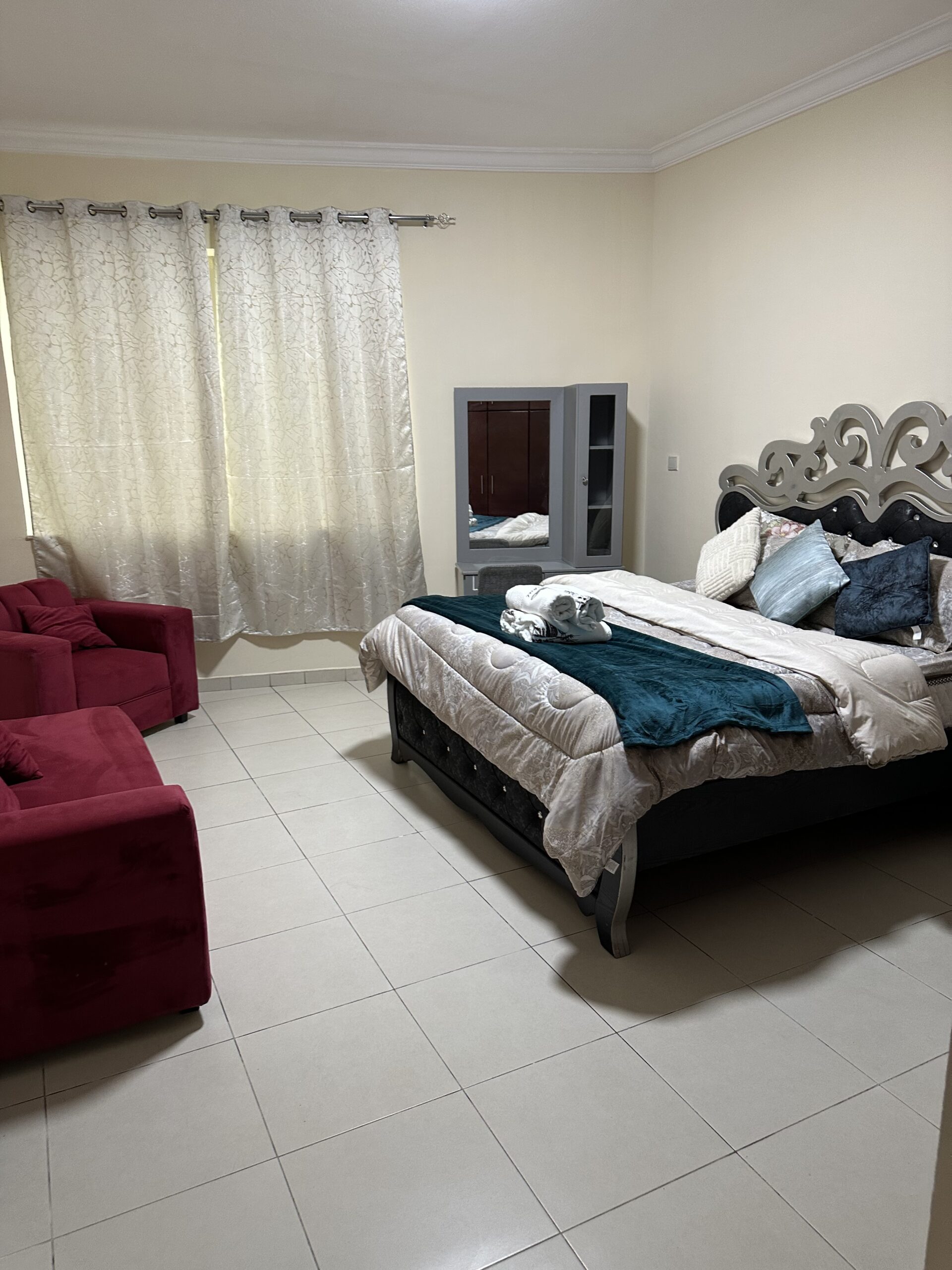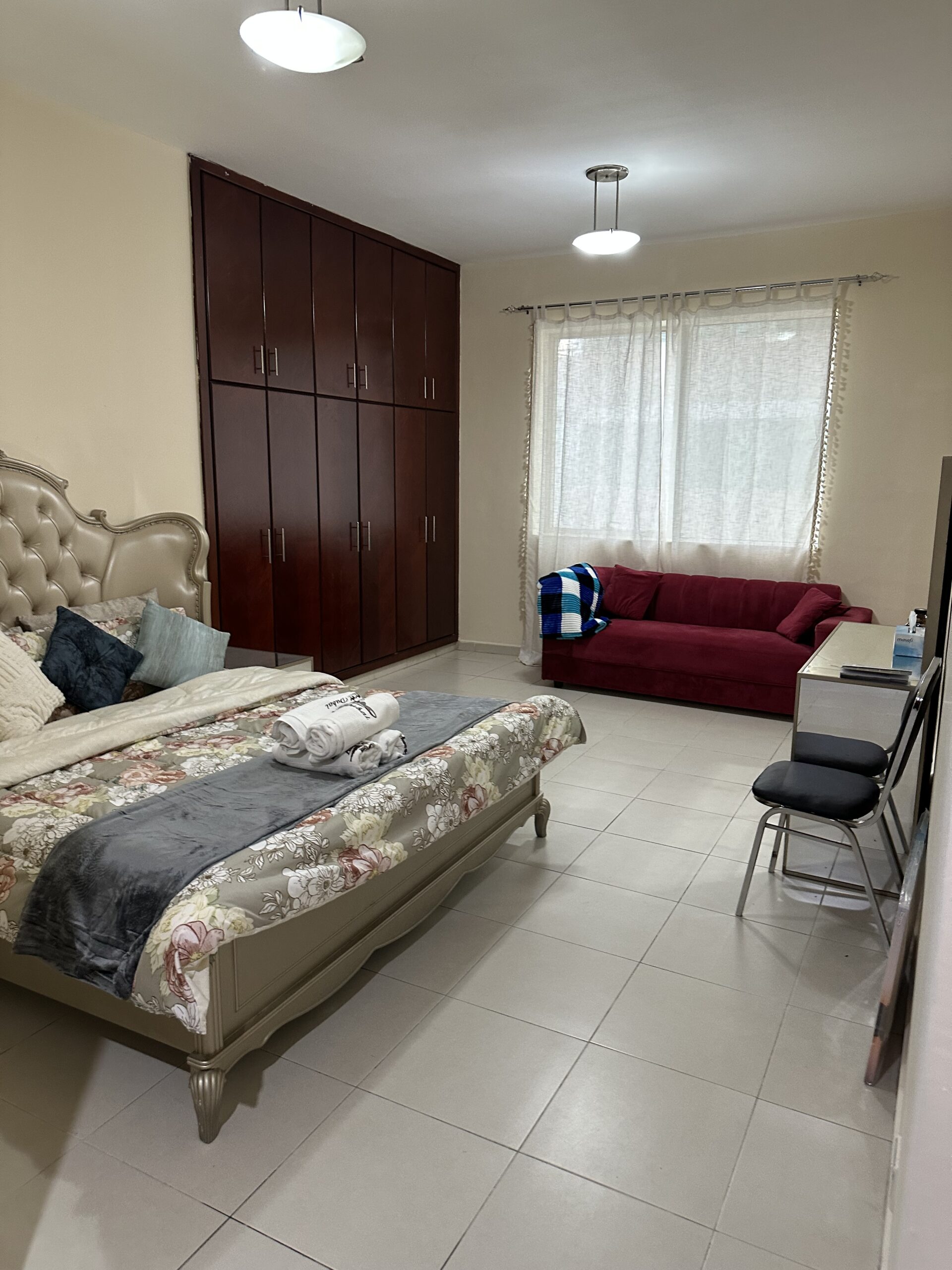 This private bedroom with its own bathroom in a 2 BHK apartment at Dar Al Khaleej—Tower A offers a comfortable and convenient stay in one of Sharjah’s most desirable neighborhoods.