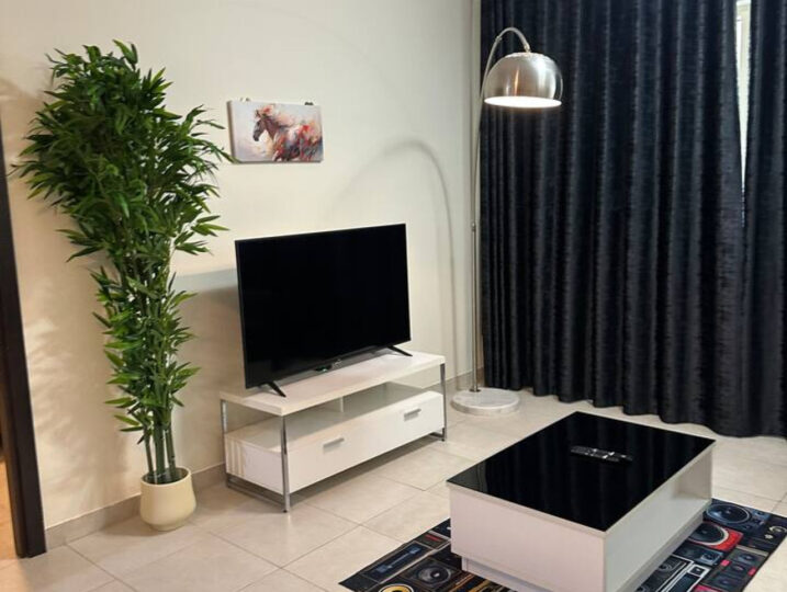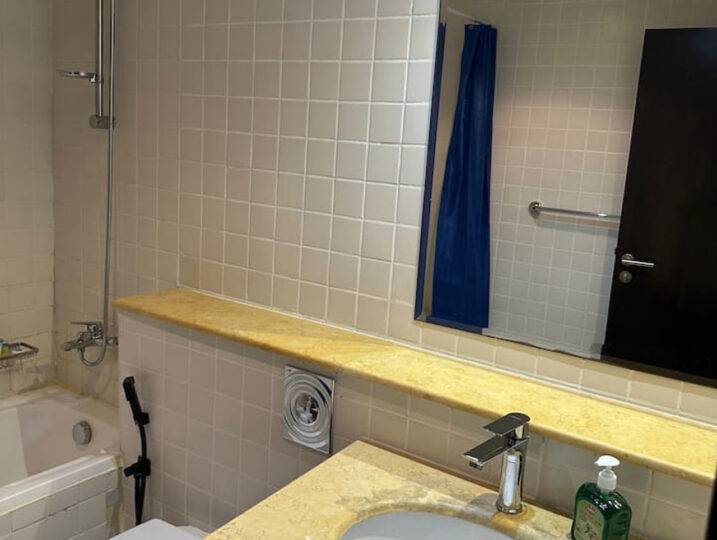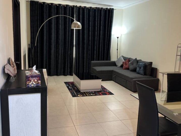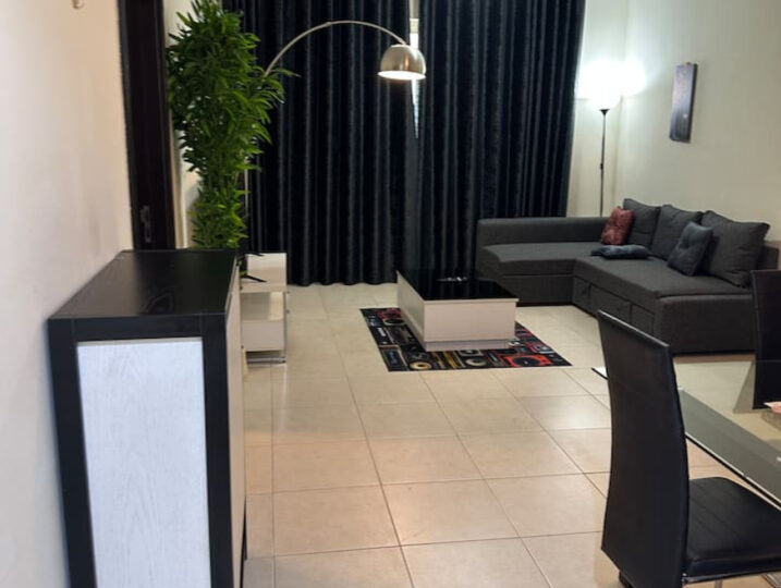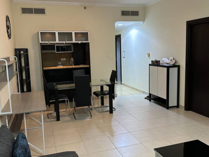 Stay in the heart of Dubai Marina in this bright 1-bedroom at Marina Quays. It has a cozy living area, a fully equipped kitchen, a spacious bedroom, and a clean bathroom with a bathtub.